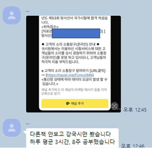 강국시 리얼 강의 후기 후기 게시판 글남기기 늦은 나이에 합격하셨다는 쿨한 형님 조회 : 57 등록일 : 2026-03-11 09:40 작성자 : kangguksi 축하드립니다. 제 강의에서 졸업을 하고 시간이 꽤 오래 지나신 분들이 합격소식을 전해주는 경우가 꽤 많습니다. 정말 축하드리고 앞으로의 날들도 강국시가 응원하겠습니다! 좋아요 0 싫어요 0 인쇄 전체 0 추천순 작성순 최신순 작성자 비밀번호 사진 첨부파일 이전 20년만에 합격했네여 감사합니다. 목록보기 답글쓰기 글수정 글삭제